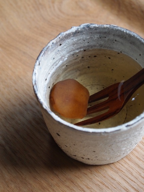 去年作った梅シロップのお湯割り
