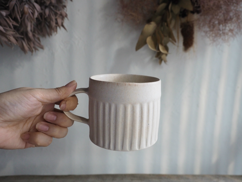 しまマグカップ(白ベージュ)